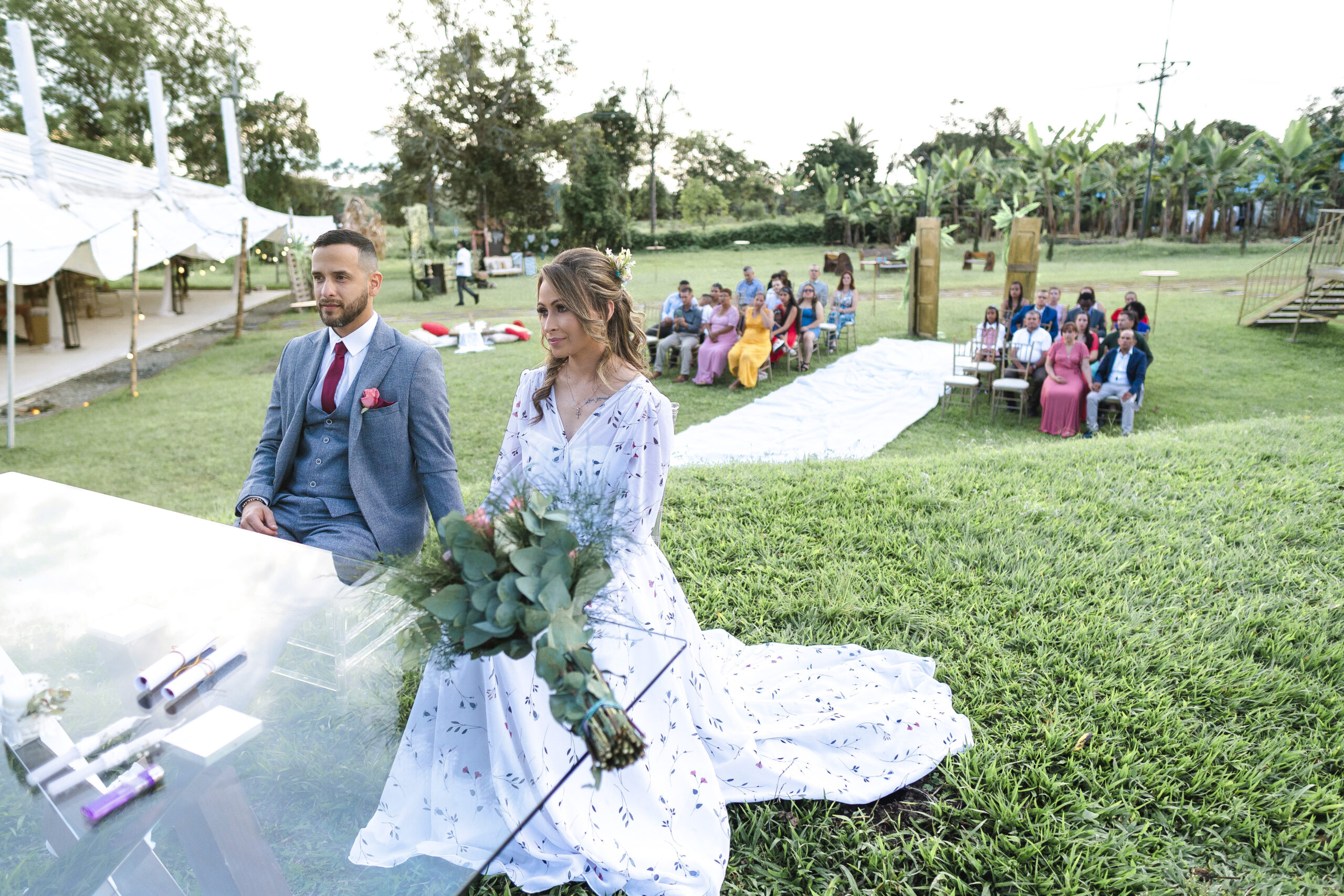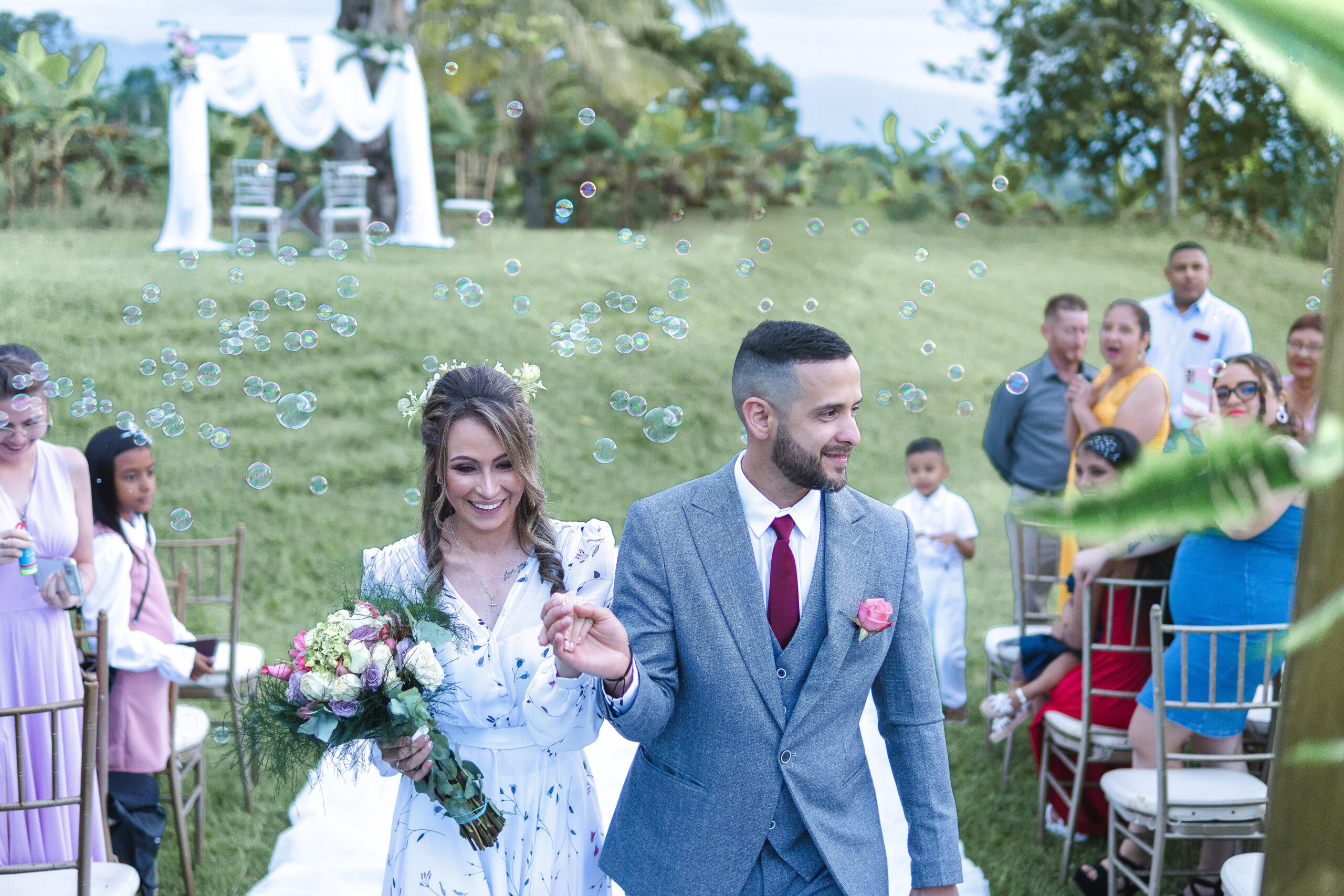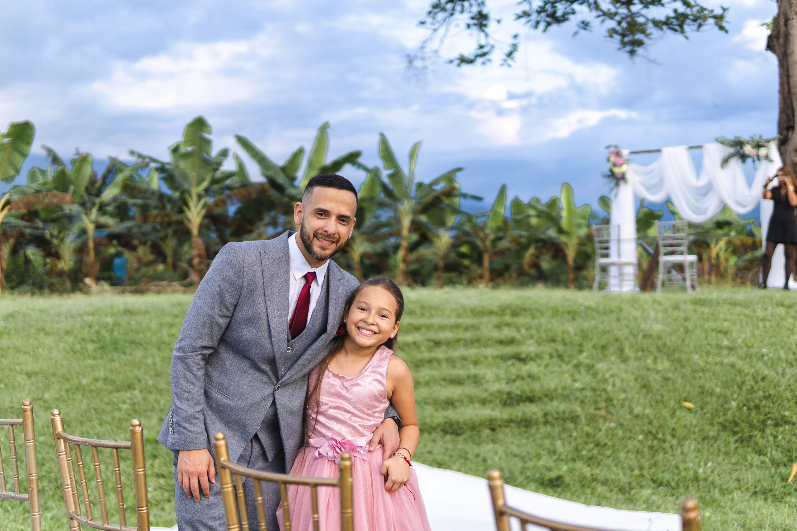A través del lente de la cámara, capturé la esencia de una boda al aire libre, donde la intimidad y la felicidad danzaban en cada rincón. Los rostros iluminados por sonrisas genuinas reflejaban el amor palpable entre la pareja y los seres queridos que los rodeaban. Bajo el dosel de un árbol imponente, el sol derramaba su luz dorada sobre la ceremonia, mientras risas y lágrimas de alegría se entrelazaban en el aire. Cada clic de mi cámara congelaba momentos llenos de emoción y complicidad, retratando una jornada donde la felicidad se tejía con los rayos del sol y la calidez de los corazones reunidos.