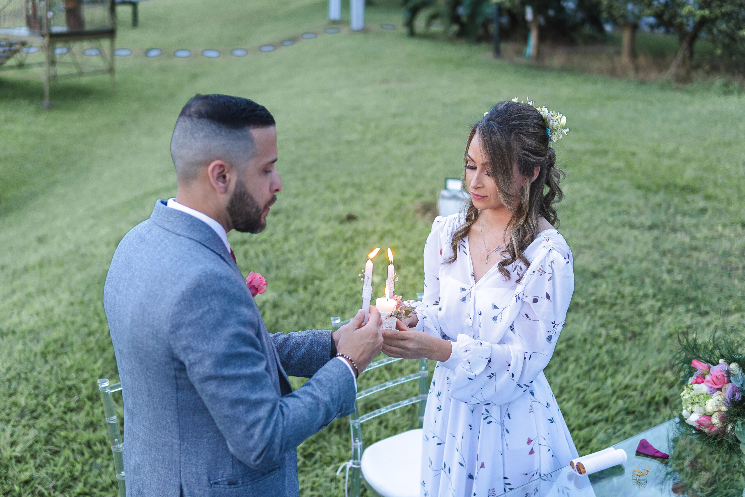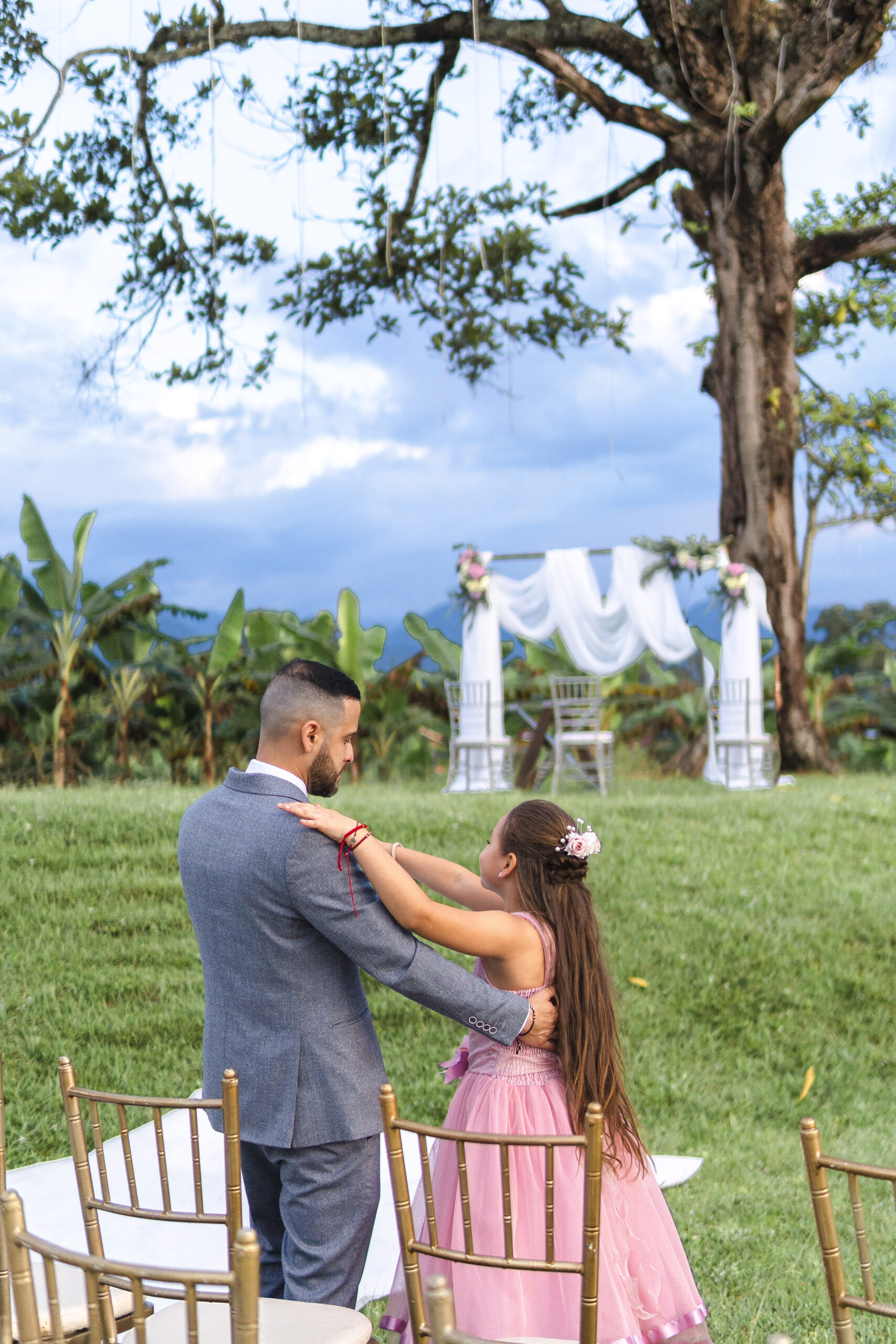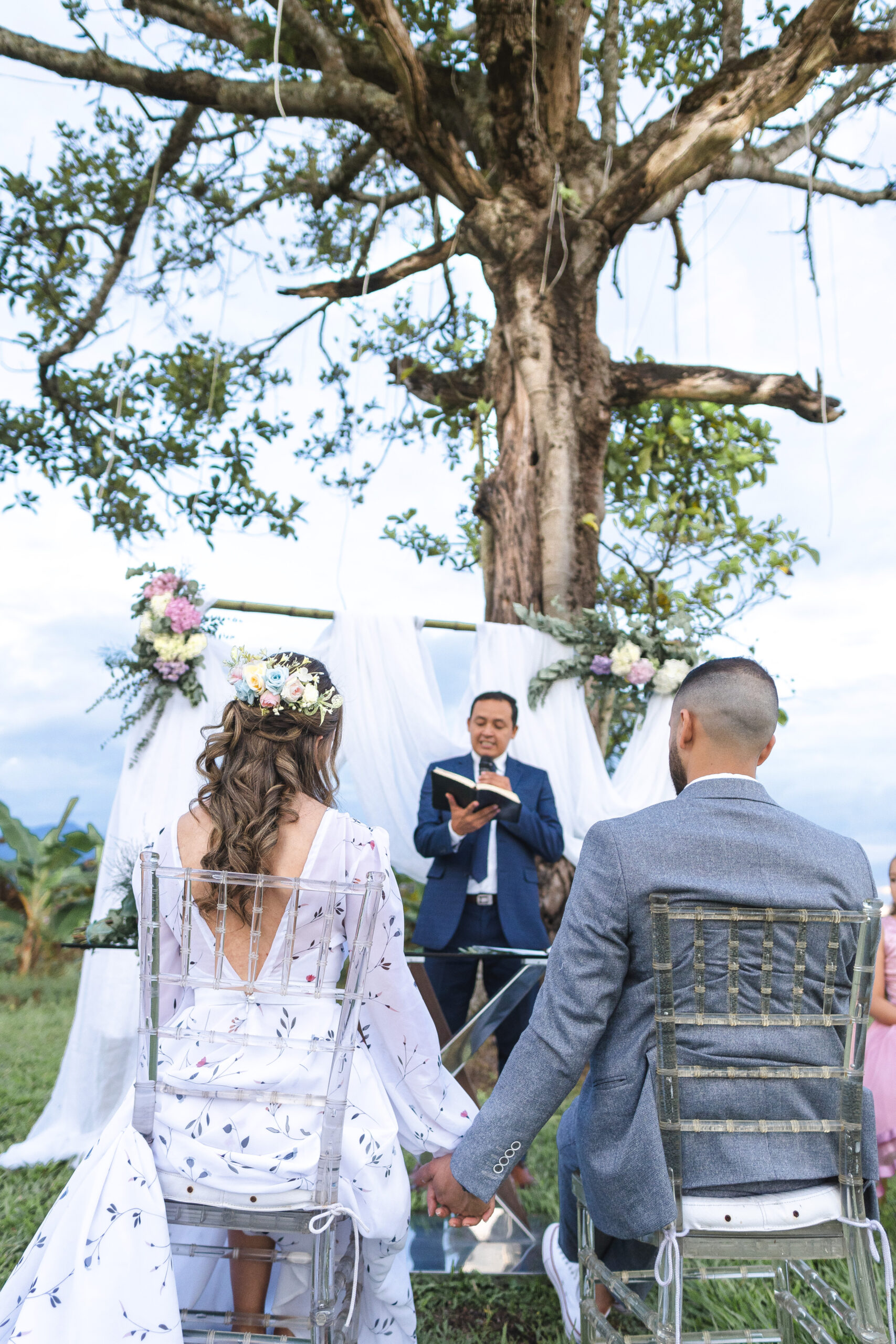 A través del lente de la cámara, capturé la esencia de una boda al aire libre, donde la intimidad y la felicidad danzaban en cada rincón. Los rostros iluminados por sonrisas genuinas reflejaban el amor palpable entre la pareja y los seres queridos que los rodeaban. Bajo el dosel de un árbol imponente, el sol derramaba su luz dorada sobre la ceremonia, mientras risas y lágrimas de alegría se entrelazaban en el aire. Cada clic de mi cámara congelaba momentos llenos de emoción y complicidad, retratando una jornada donde la felicidad se tejía con los rayos del sol y la calidez de los corazones reunidos.